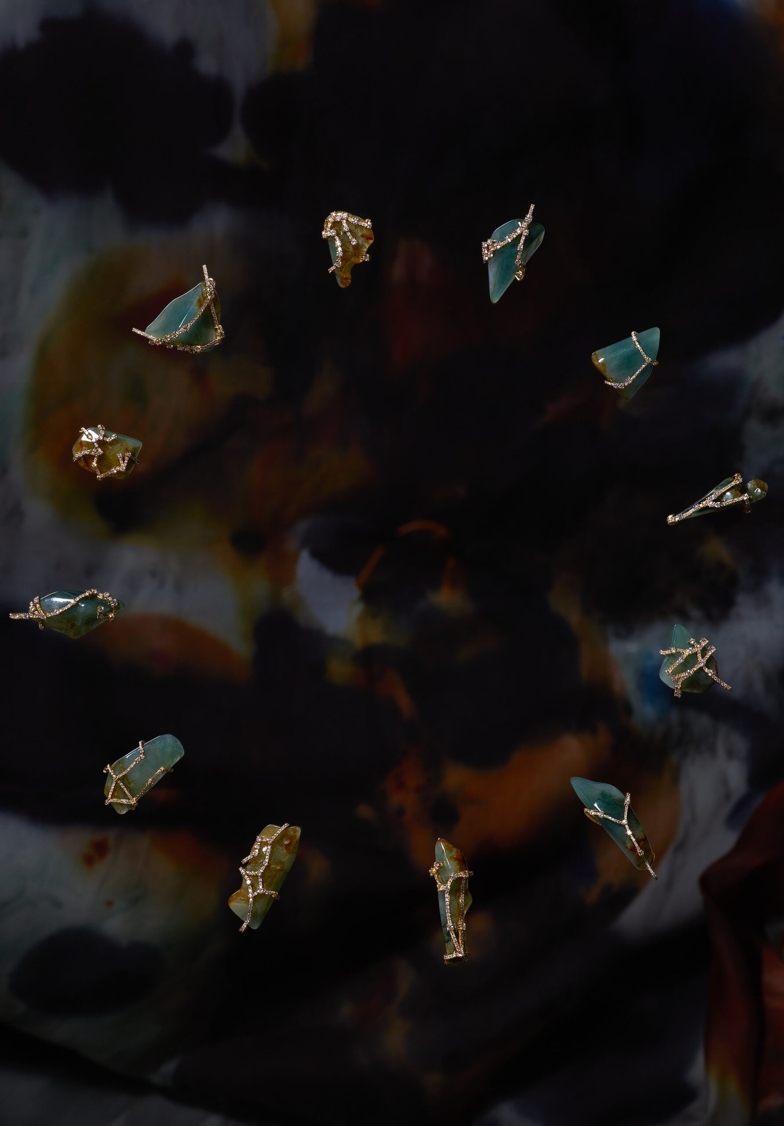 18K Gold Jadeite Round brillliant Cut Diamond